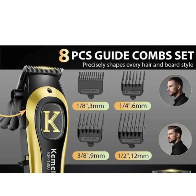 ماشین اصلاح حجم زن کمی1800 با طراحی حرفهای عملکرد قوی، مناسب برای اصلاح دقیق و یکنواخت موهای سر و بدن دارای تیغههای تیز و قابل تنظیم، باتری بادوام و دسته ارگونومیک برای استفاده آسان و راحت در هر زمان و مکان.