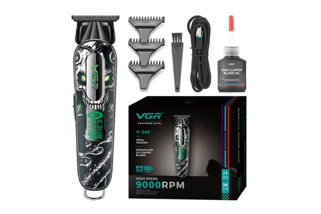 ماشین اصلاح خط زن وی جی آر 260 دارای طراحی ارگونومیک، تیغههای دقیق و قابل تنظیم، مناسب برای اصلاح خط ریش و مدلسازی مو با سرعت بالا و عملکرد بینقص، قابل استفاده آسان و تعمیر و نگهداری آسان برای نتیجهای حرفهای در منزل.